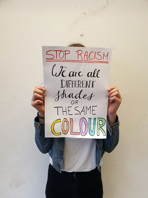 Als "Schule ohne Rassismus - Schule mit Courage" hatte die Schaumburger am 21.03.2019, dem "Internationalen Tag gegen Rassismus", die Gelegenheit zu zeigen, dass unsere Schule den Titel zu Recht verliehen bekommen hat. In allen Klassen und Jahrgangsstufen gab es die verschiedensten Projekte. Der 10.Jahrgang z.B. konnte und wollte u.a. mit selbstgestalteten Antirassismusplakaten ein Statement setzen. Hier eine Auswahl an den so entstandenen Plakaten der Zehntklässler...