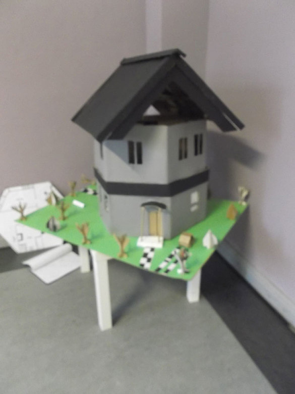 2. Außerdem soll das Modell aus Pappe oder Papier im Maßstab 1:100 oder 1:50 gebaut werden. Auch hier sind Papiereinrichtungsgegenstände für eine gute Bewertung notwendig.