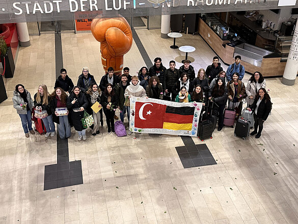 Montagnachmittag 17:30 Uhr am Bremer Flughafen: Mit einem großen selbst gestalteten Begrüßungsbanner stehen die zwölf Schülerinnen und Schüler der Oberschule an der Schaumburger Straße im Terminal 1, um die Gäste aus Izmir zu begrüßen. Die zwölf Schülerinnen und Schüler aus der Bremer Partnerstadt Izmir reisen per Flugzeug für eine Woche nach Bremen, um gemeinsam mit den Bremer Schülerinnen und Schülern an einem Erasmus-Projekt teilzunehmen. Neben der Projektarbeit steht das Kennenlernen der Partnerstadt, Bummel über den Weihnachtsmarkt und Aktivitäten wie z.B. Bowling auf der Liste der gemeinsamen Unternehmungen. Der Gegenbesuch in der Türkei wird im April 2025 stattfinden.