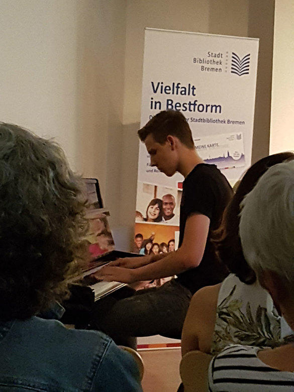 Unterbrochen wurden die Lesungen von musikalischen Pausen durch Erik Lion (9c), der zwei Klavierstücke vorspielen durfte und damit das Publikum begeisterte.