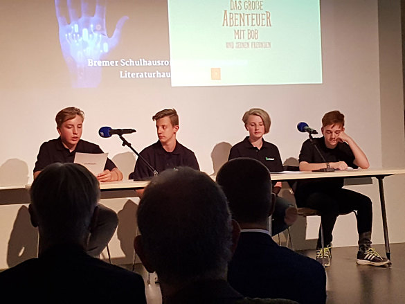 In der Pressemitteilung des Literaturhauses Bremen heißt es: "Die Story der Blumenthaler Jugendlichen mit dem Titel „Das große Abenteuer mit Bob und seinen Freunden“ ist gleichermaßen spannend wie komisch: Hamster Bob will mit Sabrina und ihren Freunden Julie, Ahmed und Toni einen Schatz finden, der irgendwo unter der Schule versteckt liegt.