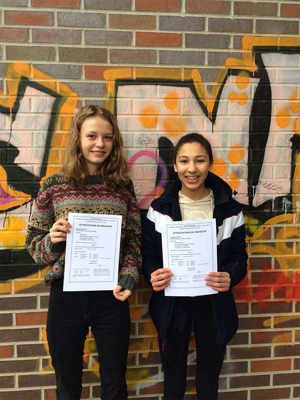 Die Schülerinnen Shaimaa Faouzi (9b) und Alva Elbrecht (10a) haben mit großem Erfolg an den im Januar/Februar stattfindenden DELF-Prüfungen vom Institut français teilgenommen.