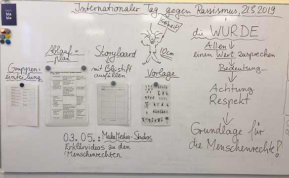 Am Freitag, 3.5., waren wir zu Gast im MakeMedia-Studio. Freundliche Mitarbeiterinnen und ein freundlicher Mitarbeiter haben uns unterstützt bei der Produktion unserer Erklärvideos zu den Menschenrechten der Vereinten Nationen.