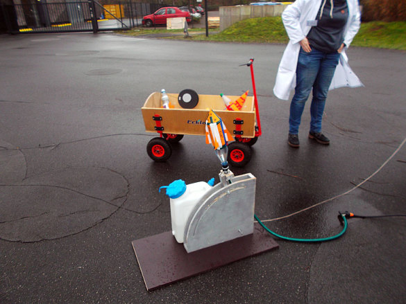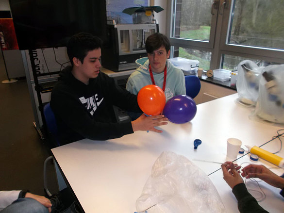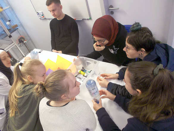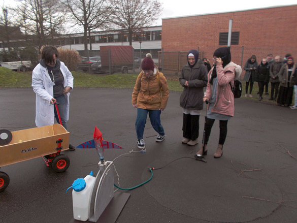 Wie funktioniert eigentlich eine Radarfalle? Wie muss eine Rakete konstruiert sein, damit sie gut fliegt? Wie programmiere ich ein Raumfahrzeug? Und wie überlebt ein rohes Ei den Sturz aus der 2. Etage? Antworten auf all diese Fragen konnten die Schülerinnen und Schüler mit Experimenten finden. Angeleitet von Studentinnen und Studenten ging es in das SchoolLab des DLR, wo es naturwissenschaftlichen Unterricht zum Anfassen gab. Am Ende des Vormittags lief dann noch der Countdown für die selbst hergestellten Raketen, die in den Himmel über der Uni aufstiegen.