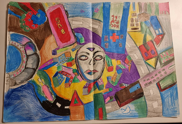 Die Schüler und Schülerinnen des 9. und 10. Jahrgangs beschäftigten sich in der letzten Zeit mit Stilmitteln des Expressionismus. Eine eigene expressionistische Arbeit zum Thema "Stadt" war anzufertigen.