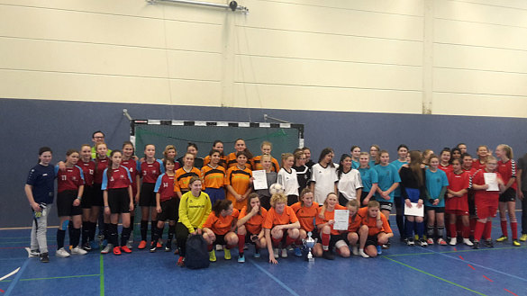 Einen hervorragenden 3. Platz belegten die älteren Mädchen ab Klasse 7 beim Hallenfußballturnier in der Bezirkssportanlage Findorff. Nach einem schwierigen Start steigerte sich die Mannschaft und siegte im letzten Spiel sogar gegen die Zweitplazierten vom Gymnasium Hamburger Straße.