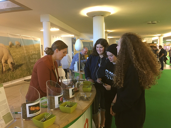 „In Halle 3 laden die Aussteller aus Bremen und Niedersachsen zum Wissenspfad „Land und Natur“ ein. Ein Schwerpunktthema ist die Landwirtschaft der Region. Der Verein i.m.a – information.medien.agrar e.V. hat einen Pfad mit verschiedenen Lernstationen entwickelt, auf dem die SchülerInnen mit allen Sinnen handlungsorientiert lernen können...