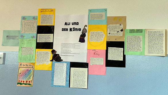 Im Rahmen der Unterrichtseinheit ‚Märchen‘ hat die Klasse 5e, gemeinsam mit den Deutschlehrkräften Stefanie Baitis und Soner Uygun, das internationale Märchen „Ali und der König“ bearbeitet. In Rahmen dessen haben die Schülerinnen und Schüler zunächst nur den Märchenanfang von dem Märchen kennengelernt und sollten diesen anschließend individuell fortführen. Das tolle Ergebnis ist neben dem Klassenraum der 5e (Raum 222) ausgehängt und kann angesehen werden.