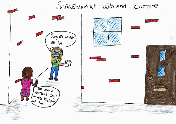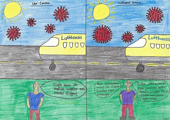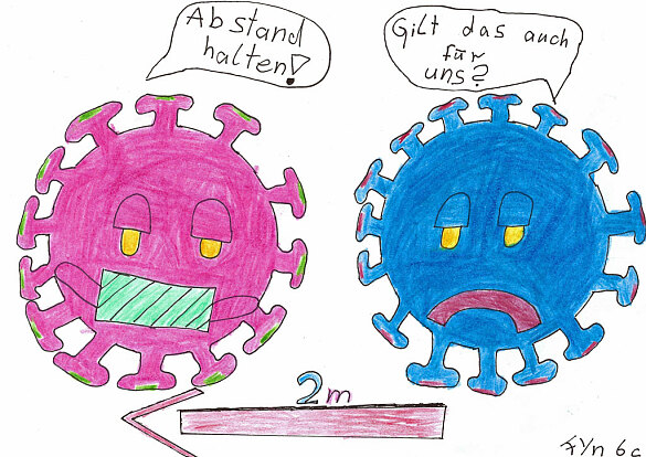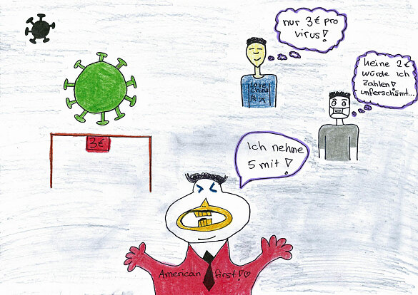 Humorvoll, kritisch und künstlerisch haben unsere 5. bis 10. Klässler sich mit ihren Corona-Erfahrungen der Vergangenheit, Gegenwart und nahen Zukunft auseinandergesetzt und dabei bemerkenswerte Cartoons erschaffen.