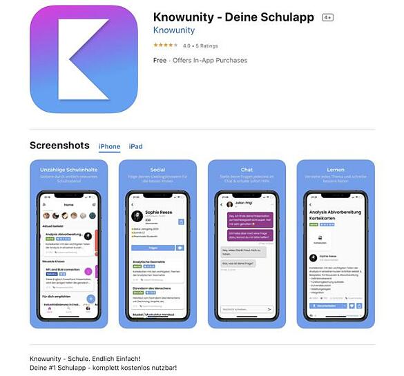 Beschreibung: Knowunity ist eine App, in der du Präsentationen, Ausarbeitungen, Buchzusammenfassungen und Aufsätze - als Text oder direkt zum Anhören - von Schülern für Schüler finden und herunterladen kannst. Diese verschiedenen Dateien werden Knows genannt. Das Herunterladen eines Knows kostet leider ein bisschen Geld, etwa einen Euro und 9 Cent, meiner Meinung nach ein fairer Preis, da sich manche User sehr viel Mühe geben, ihre Beiträge möglichst schön zugestalten. Aber es gibt mehrere Funktionen, wie zum Bespiel drei verschiedene Knows selbst hochladen oder fünf verschiedene Knows als Favorit merken lassen, bei denen dir im Gegenzug mehrere Knows für umsonst freigeschaltet werden. Außerdem kannst dir den Beitrag anderer in einer leicht verschwommenen Version als Vorschau anzeigen lassen. Und wie schon gesagt, die Knows werden von Schülern verfasst, das bedeutet, dass es meistens verständlicher und einfacher erklärt wird als z.B. bei Wikipedia, und bei Fragen kannst du dich immer direkt mit den Schülern austauschen.
