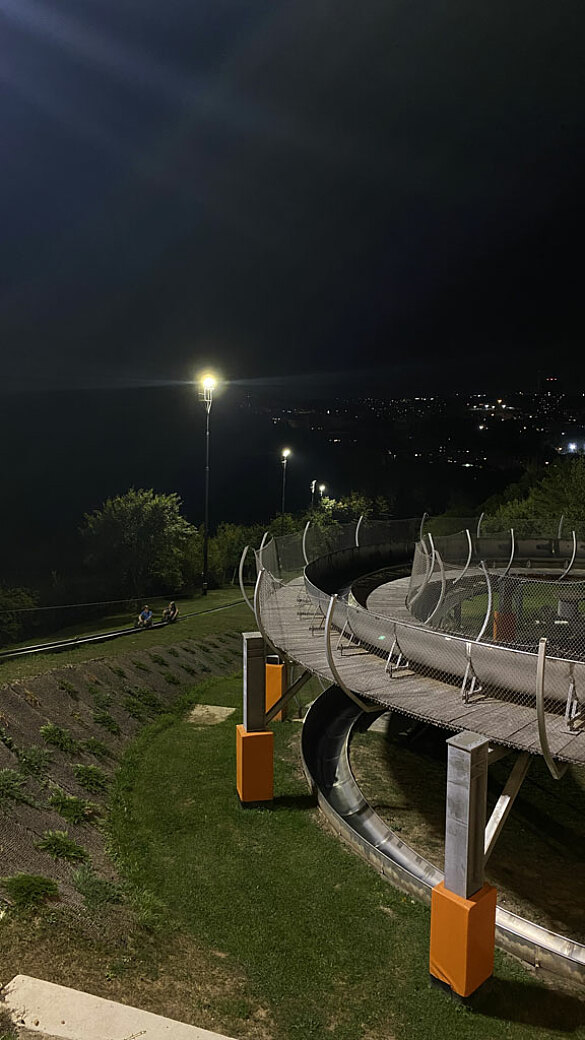 alle voll aufgeregt. Mit dem Bus fuhren wir zur Sommerrodelbahn und die Fahrt dahin