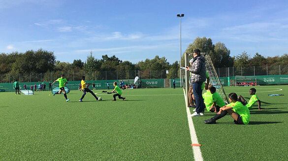 5. Minute: Zeynep presst die Gegner stark, so dass Jerry den Ball gewinnen kann. Er schießt gezielt das Tor zum 1:2.