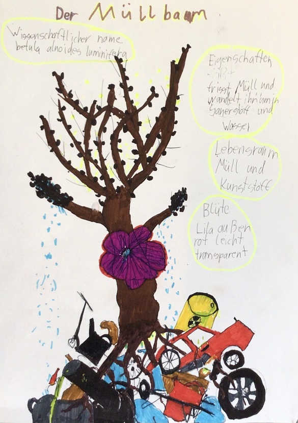 Der Müllbaum als „Pflanze der Zukunft“, Filzstift und Bleistift auf Papier