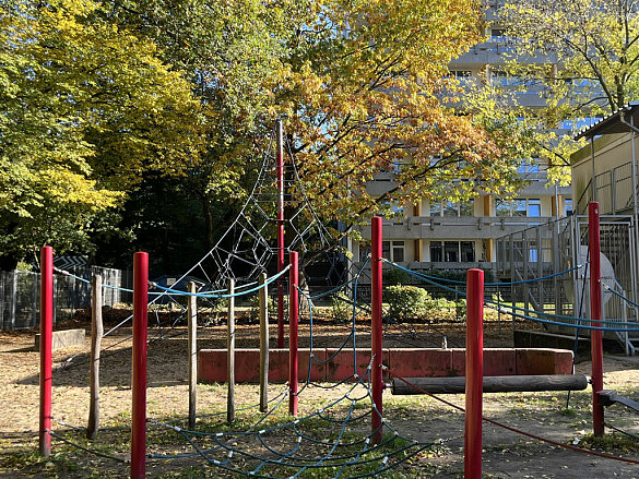 Schüler und Schülerinnen können in der Pause auf dem Schulhof Verstecken mit