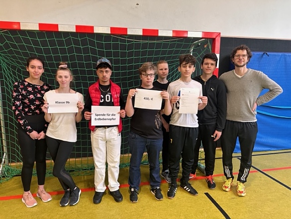 Das Leid der Erdbebenopfer in der Türkei und in Syrien ließ auch die Schülerinnen und Schüler der Klasse 9b nicht kalt. Also wurde in der Klasse nicht lange nachgedacht und ein Kuchenverkauf in der Schule organisiert. Der Pausenverkauf brachte die stolze Summe von 410,- € zusammen. Dieses Geld sollte auf Wunsch der Klasse an den Bremer Hilfsverein „Help Dunya“ überwiesen werden, was auch erfolgte. Wir danken der Klasse für ihr tolles Engagement!