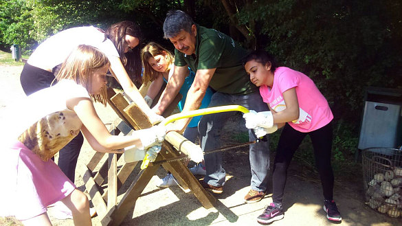 An der Station "Baumscheiben werfen" erhielt nur die Gruppe Punkte, die in den Korb traf.