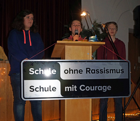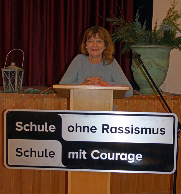 Die Plakette wurde schließlich übergeben von Frau Linda Blöchl, Landeskoordinatorin des Projekts ‚Schule ohne Rassismus – Schule mit Courage‘.