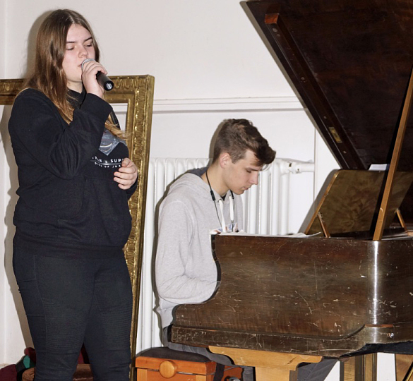 Dass die Veranstaltung so rundherum geglückt ist, lag auch daran, dass die 7a einen Ausschnitt aus ihrem Theaterstück ‚Der Knabe im Moor‘ zum Besten gab, Erik und Alycia aus dem 10. Jahrgang musikalische Beiträge auf hohem Niveau beisteuerten sowie an der 9b, die für ein abwechslungsreiches Buffet gesorgt hat.