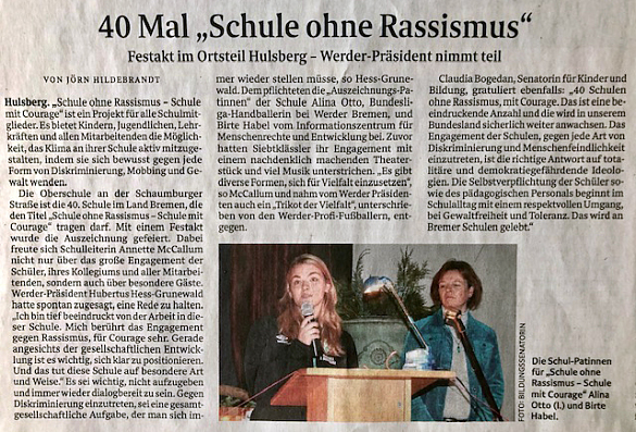 Titelverleihung ‚Schule ohne Rassismus – Schule mit Courage‘ - Artikel im Weser Kurier