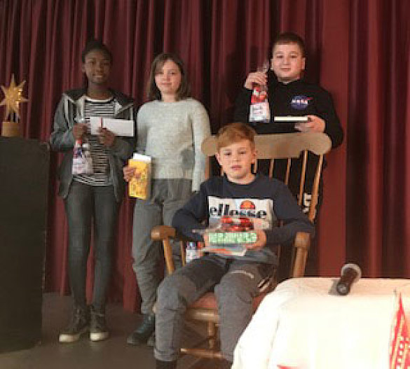 In der weihnachtlich geschmückten Aula lauschten alle Schülerinnen und Schüler ihren Klassenkameradinnen und –kameraden, die jeweils in den Klassen gewonnen hatten. Zuerst wurde aus einem eigenen Buch vorgelesen und in der zweiten Runde aus einem unbekannten Text.