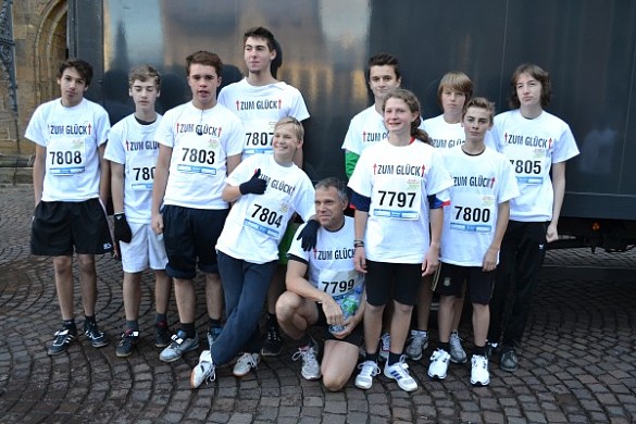 Im Rahmen des Projekts "Schulfach Glück" haben neun Jungen und ein Mädchen am Halbmarathon teilgenommen. Sie haben extrem viel Durchhaltevermögen bewiesen und alle das Ziel erreicht.