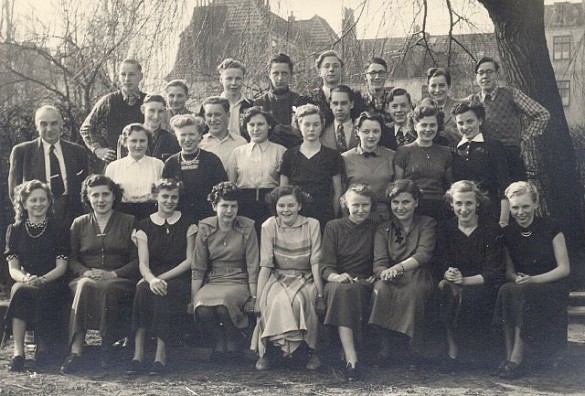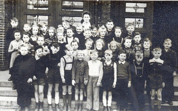 Die Klasse von Herrn Gröger vor dem Schuleingang (1949)
