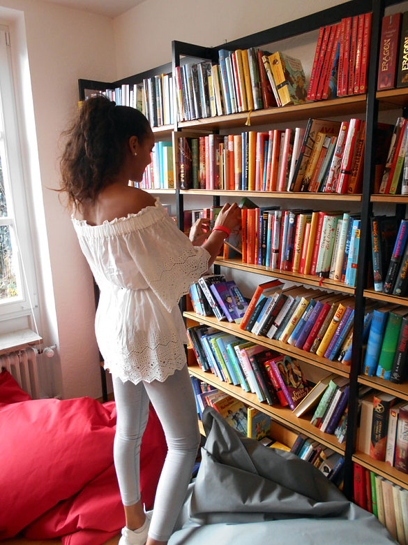 Nachdem das ehemalige Hausmeisterhaus renoviert wurde und unsere Sozialarbeiterinnen ihre Arbeit aufnehmen konnten, ist nun auch die Schülerbücherei umgezogen.